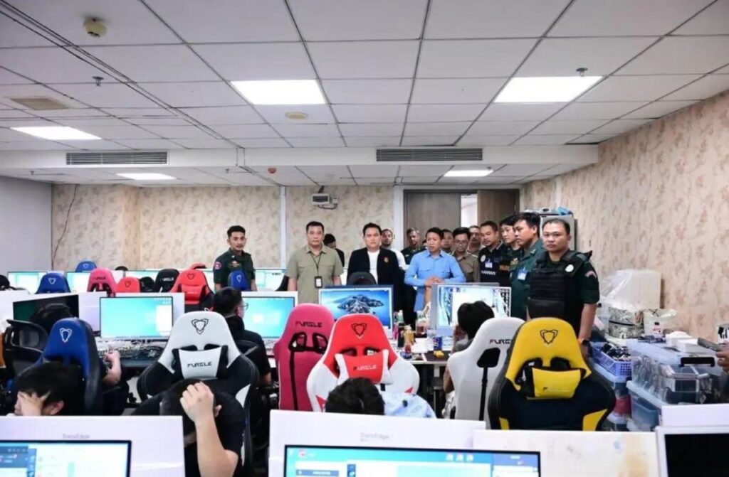 行动中,现场共查获来自7个国家的各类人员约805人(包括中国、韩国、日本、美国、菲律宾、巴基斯坦、印度及柬埔寨籍)。现场查获并收缴了约650台电脑及约1000部手机。