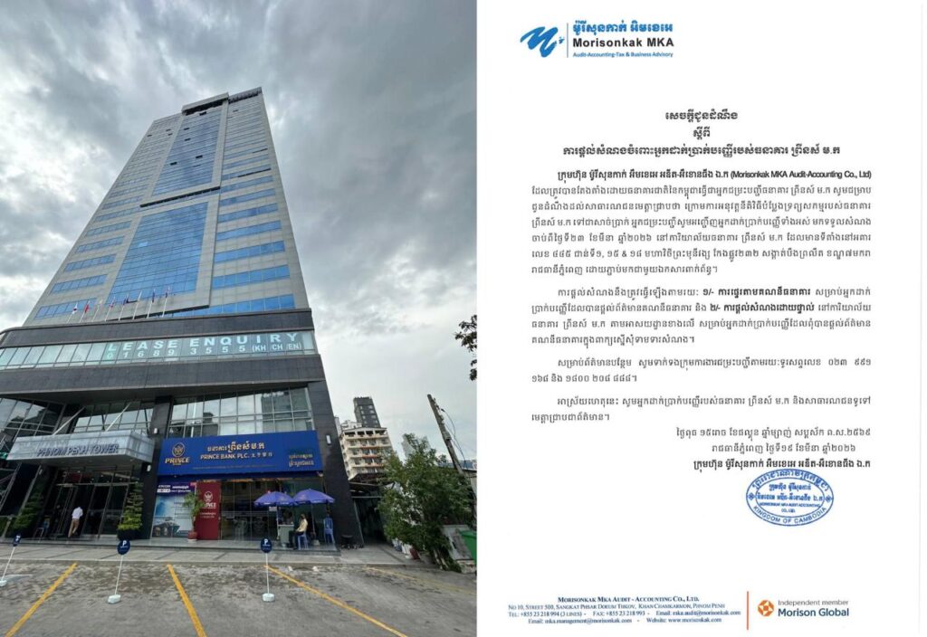 今天,由柬埔寨国家银行指定的太子银行清算组——Morisonkak MKA 审计会计公司发布重要公告:该行储户可自3月23日起申领存款赔付。