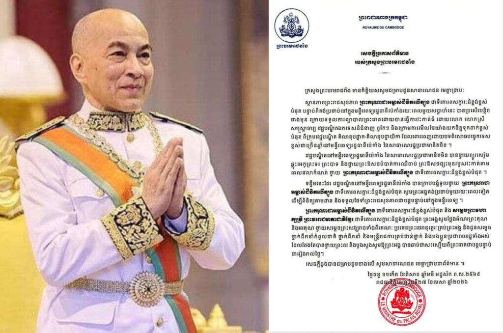 柬埔寨王宫事务部发布新闻稿,通报了正在北京住院治疗的西哈莫尼国王的健康近况。 通报称,国王近期在北京医院接受了前列腺癌的重大手术。在专家团队的精心治疗与术后护理下,目前国王的身体状况已略有改善。医疗团队已为其进行了静脉输液、止痛及伤口处理,并建议国王继续留院观察,以便进一步监测康复进度。 西哈莫尼国王与莫尼列太后借此向持续为国王祈福的僧王、国家领导人及各界民众表达深切谢意。 西港日记唯一官方TG频道更有万人大群,等你加入✈️ @xigang818 文章导航 诗梳风警方捣毁毒品窝点:抓获5人并缴获大量毒品